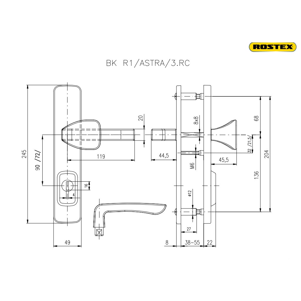 Rostex bezpečnostní kování BK R1/ASTRA (klika/madlo)