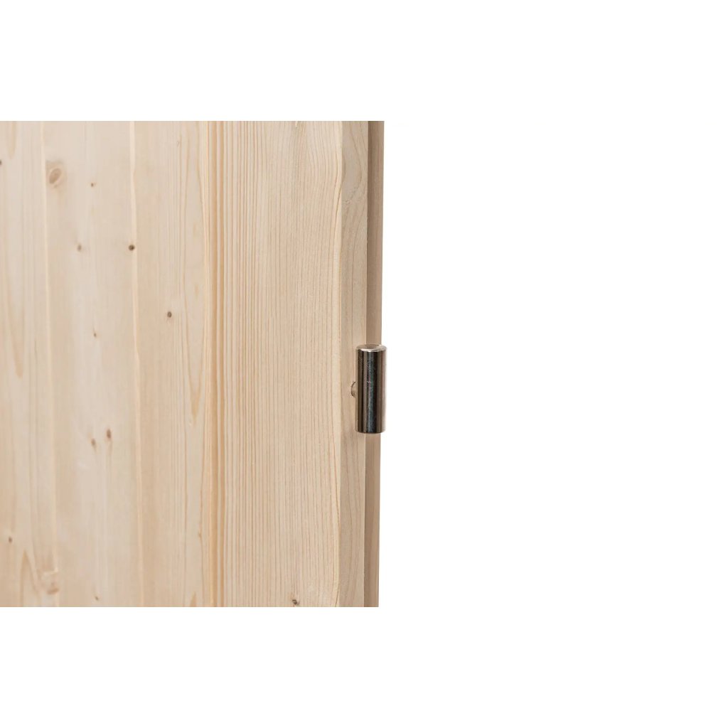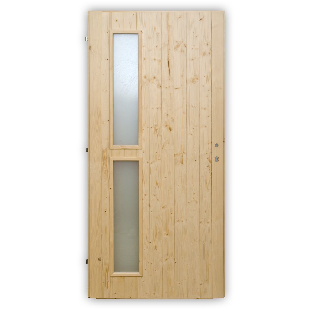 Palubkové dveře ÉRA P (45mm) - vchodové zateplené palubkové dveře v profilu 45mm ze smrkových palubek se suky v provedení se 2 skly na pantové straně.