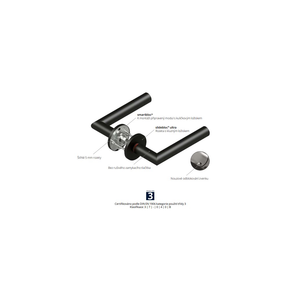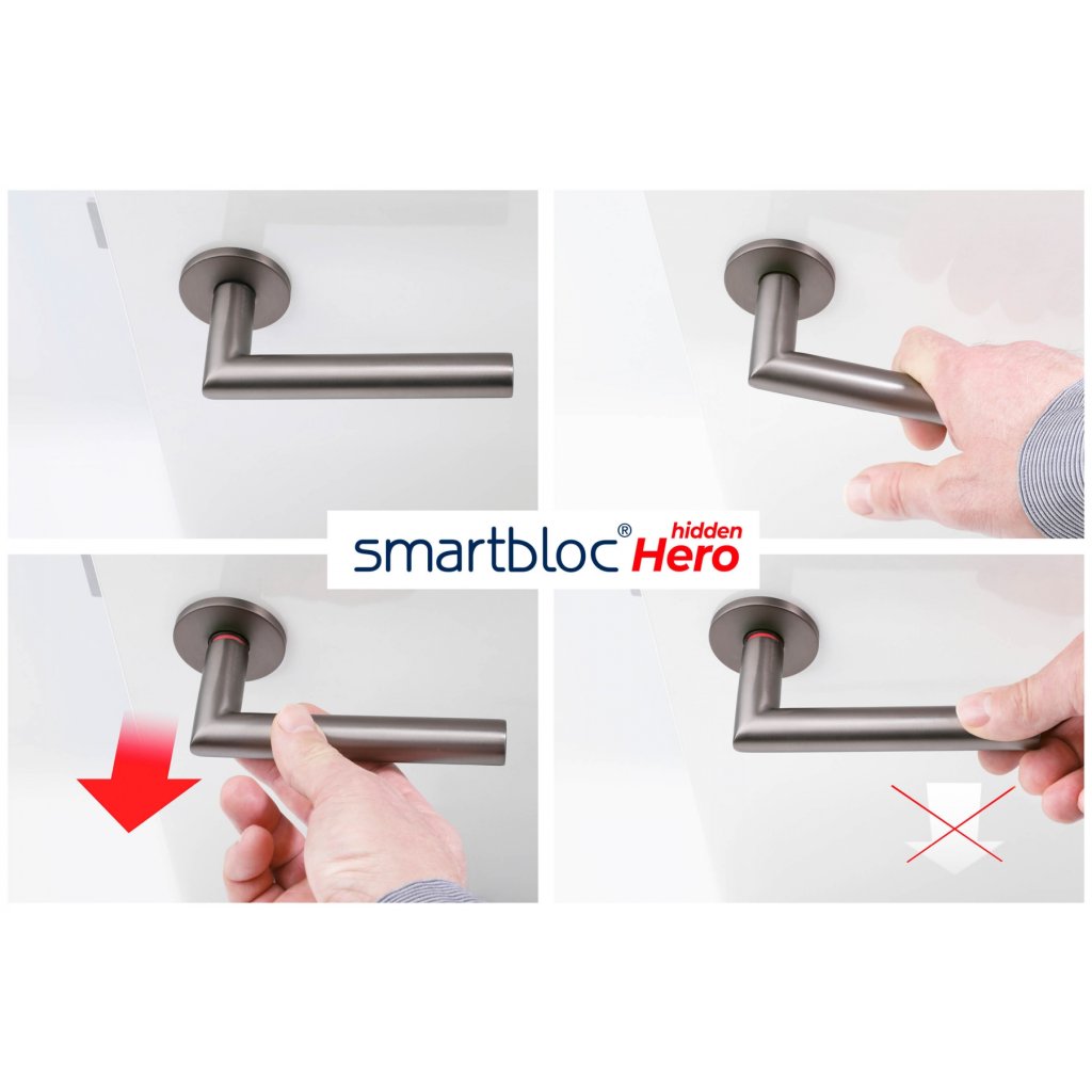 Pro interiérové dveře: Smartbloc získává elegantní vzhled a zároveň zajišťuje spolehlivou uzamykací sílu, která je až 10krát vyšší než u běžných dveřních systémů. Dveře se zamknou jednoduchým přitažením kliky k sobě, čímž se bezpečně zafixuje čtyřhran.