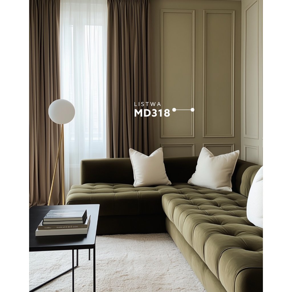Nástěnná lišta MD318 (natíratelná) je mírně zakřivená lišta s jemným ozdobným profilem, díky čemuž je skvělou volbou pro tvorbu elegantních nástěnných dekorací.