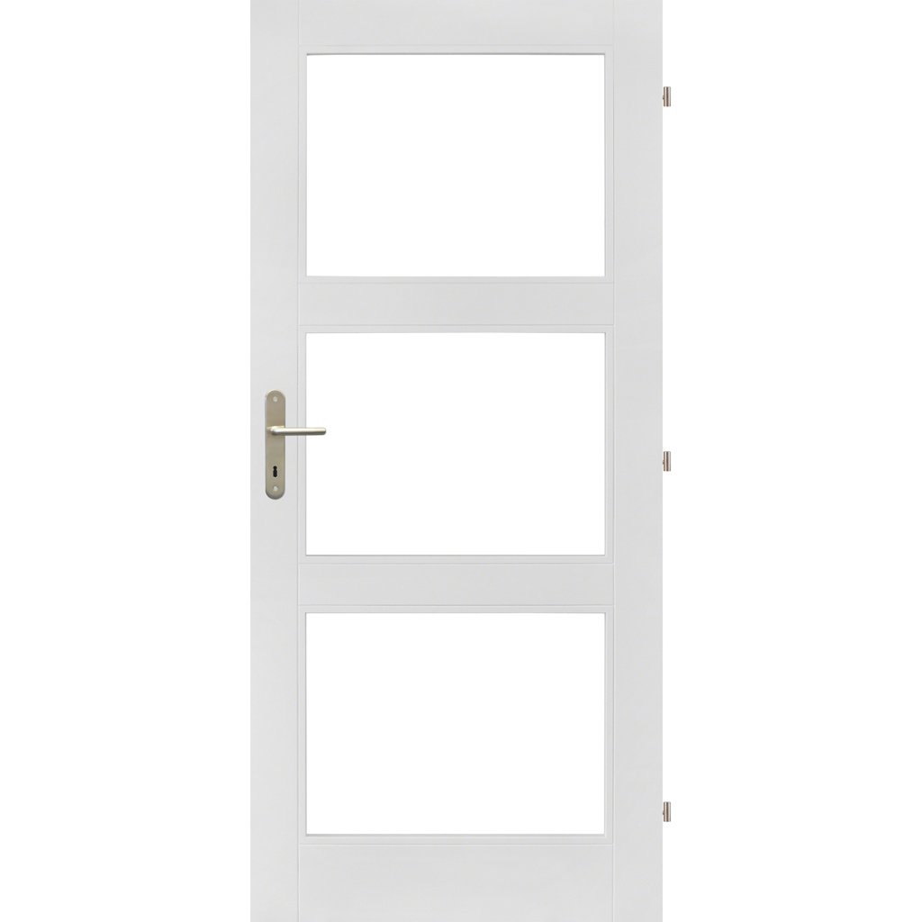 Dřevěné dveře NIKOLA 3S (výběr) - smrkové dřevěné dveře z výběrového smrkového masivu v provedení se třemi skly a jednoduchou zapuštěnou lištou.