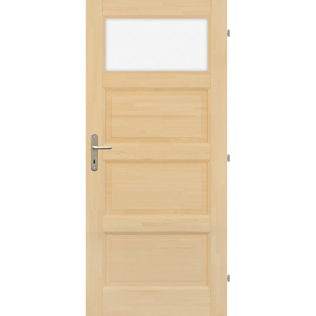 Dřevěné dveře ZDENA 1S3K (výběr) - smrkové dřevěné dveře z výběrového smrkového masivu v provedení jedno sklo, tři kazety a zapuštěnou kazetovou lištou.